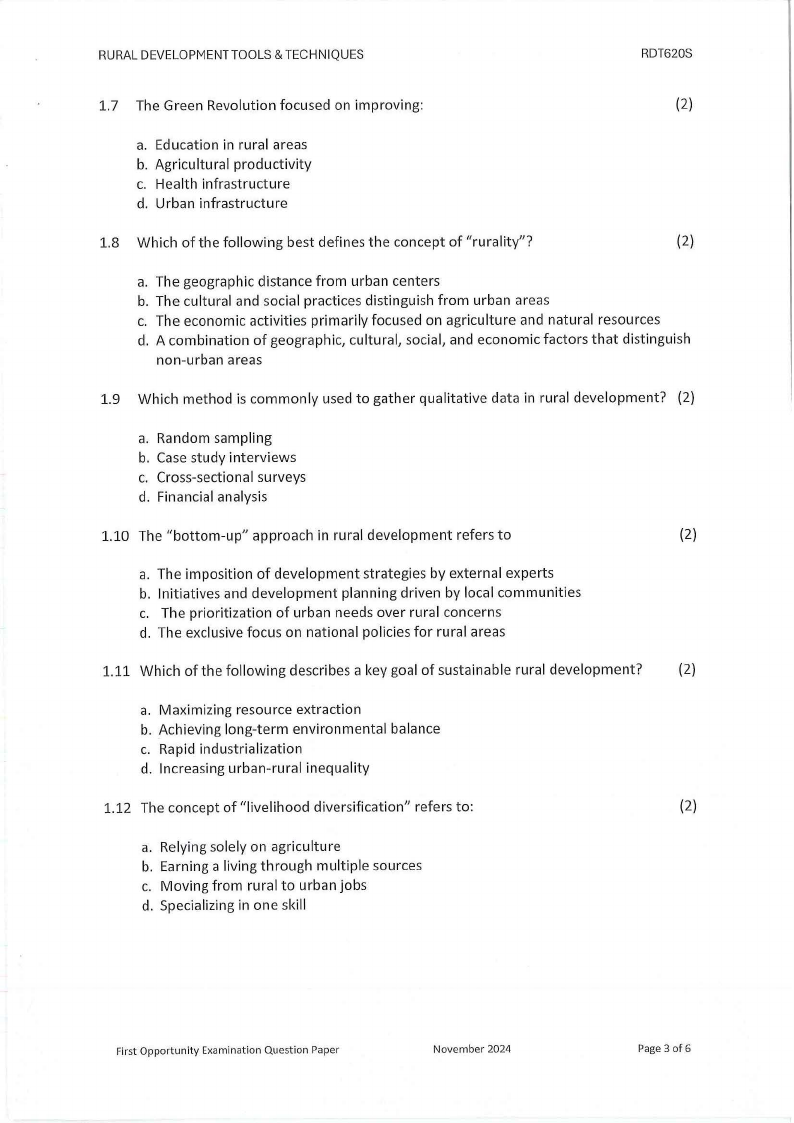 1.11 Which of the following describes a key goal of sustainable rural development?