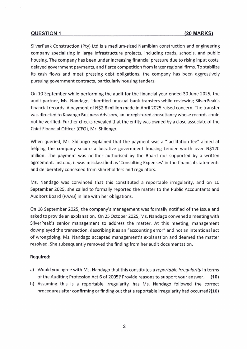 b) Assuming this is a reportable irregularity, has Ms. Nandago followed the correct