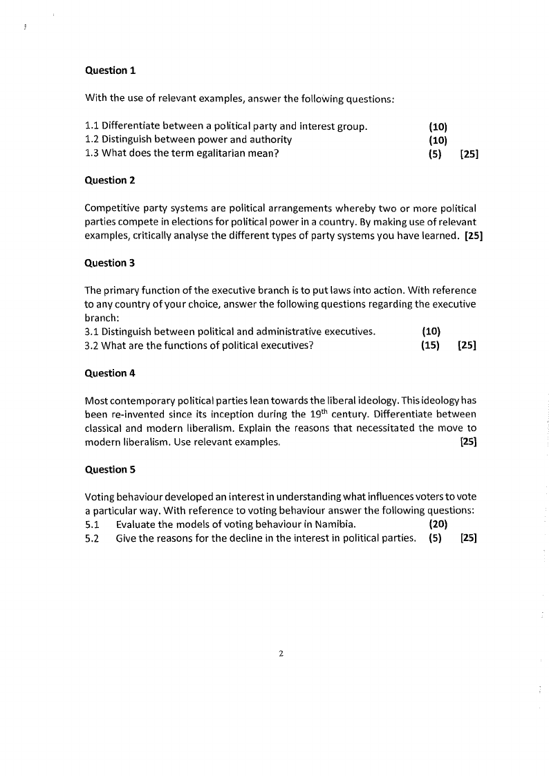 5.2 Give the reasons for the decline in the interest in political parties. (5) [25]