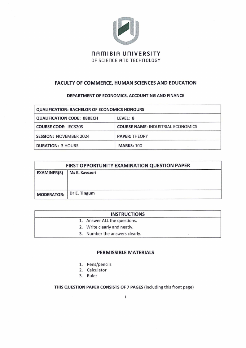 IEC820S-INDUSTRIAL ECONOMICS-1ST OPP-NOV 2024