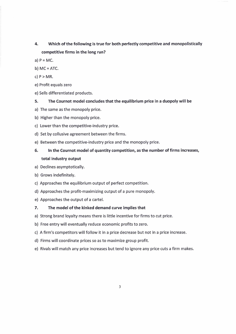The Cournot model concludesthat the equilibrium price in a duopoly will be
