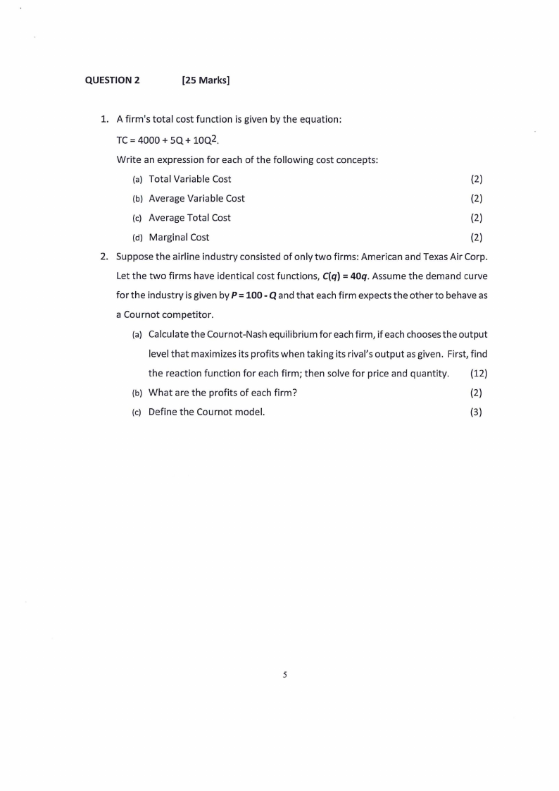 (a) Calculate the Cournot-Nash equilibrium for each firm, if each chooses the output