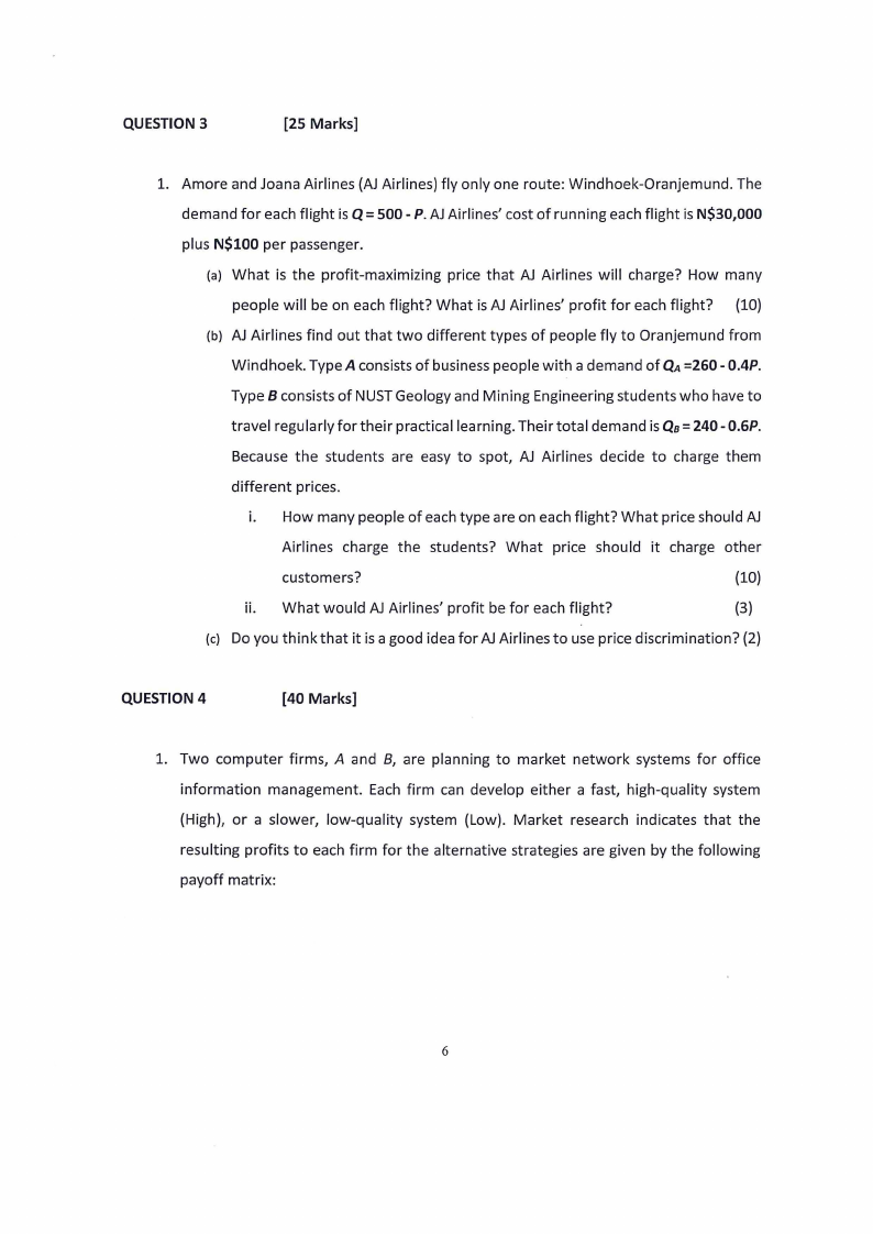 (c) Do you think that it is a good idea for AJ Airlines to use price discrimination? (2)