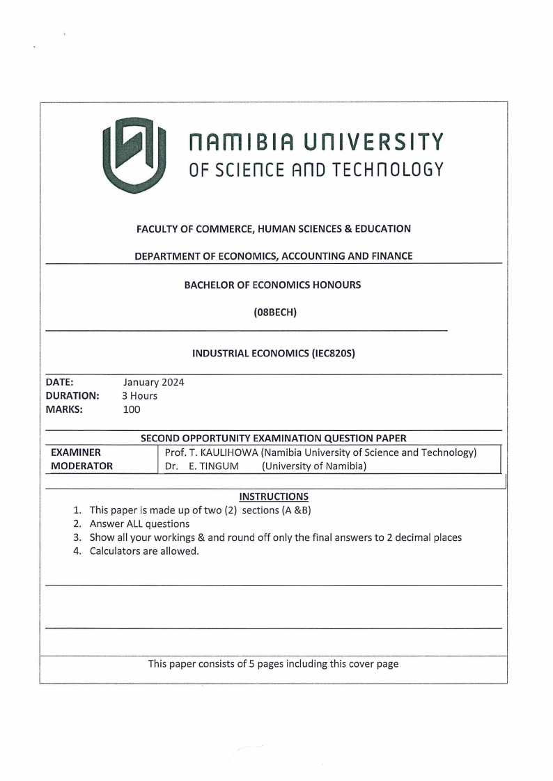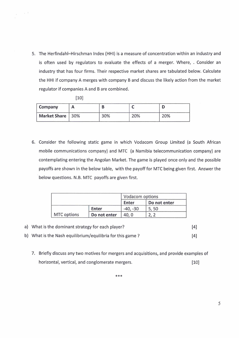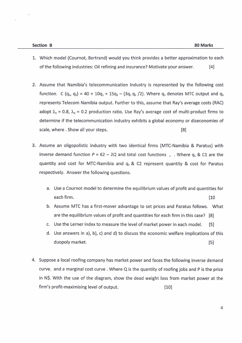 3. Assume an oligopolistic industry with two identical firms (MTC-Namibia & Paratus) with