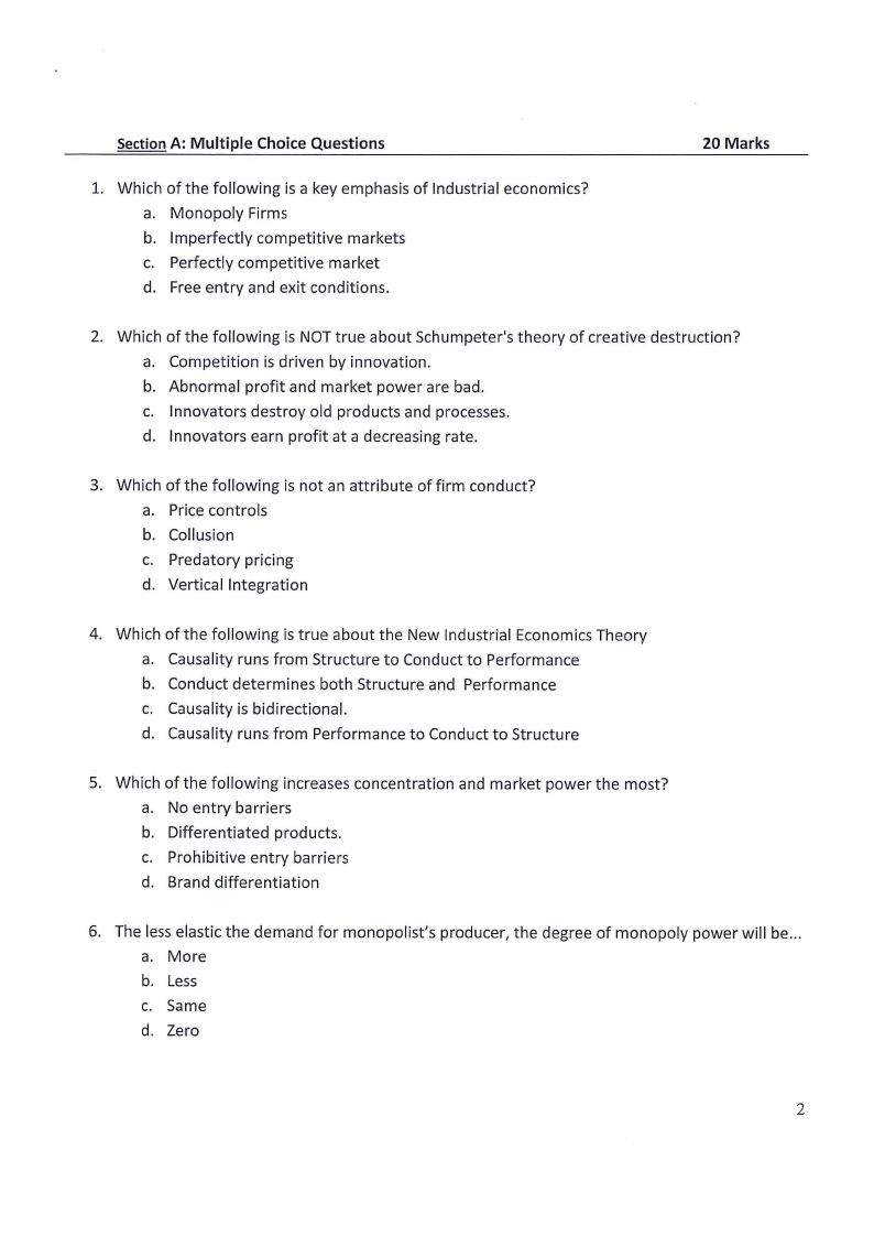 1. Which model (Cournot, Bertrand) would you think provides a better approximation to each