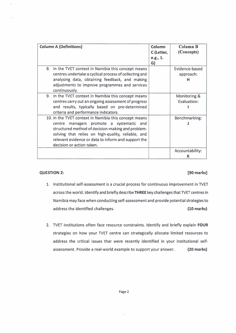 QUESTION 1: Match the concepts in Column B to their correct definitions in Column A.