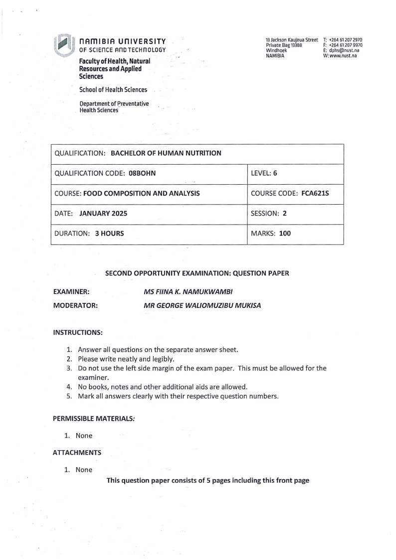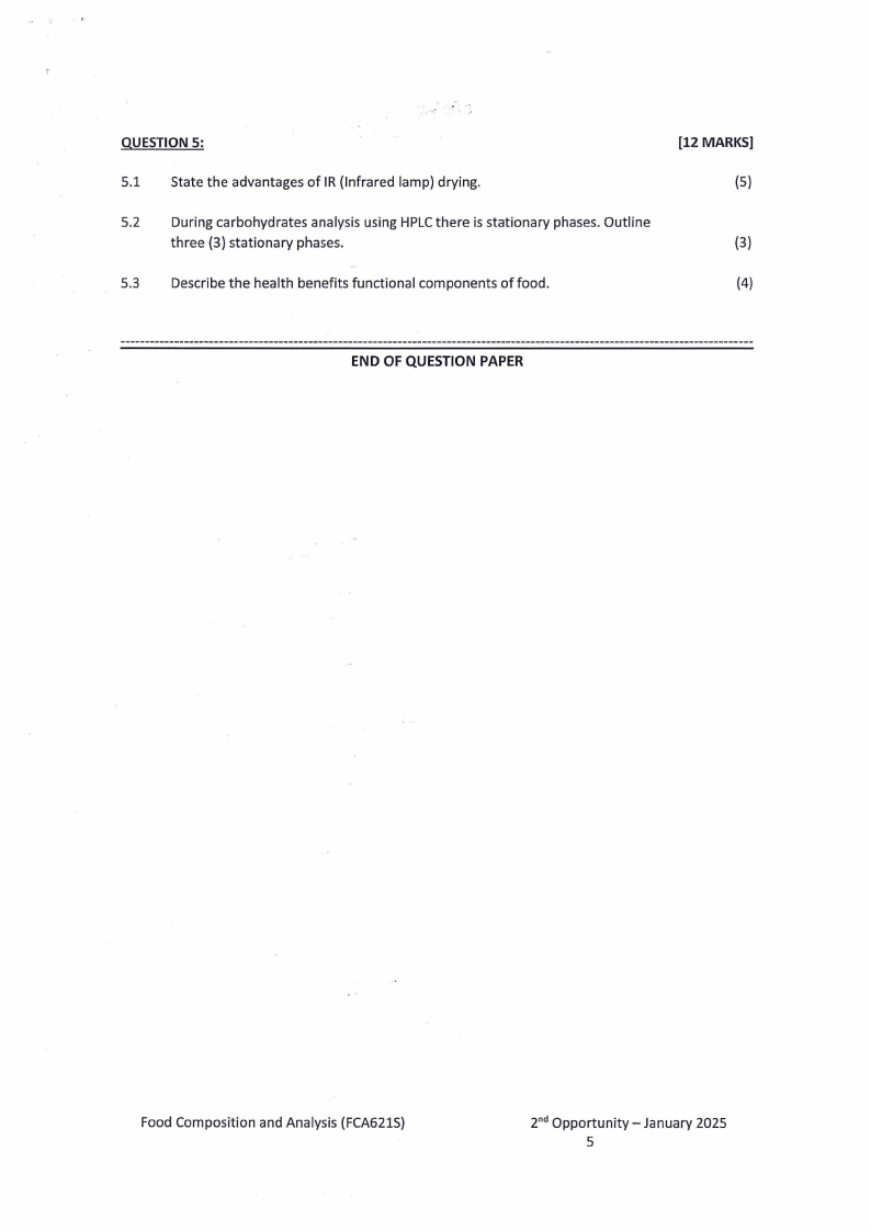 2.1 Briefly discuss any five (5) reasons for food analysis.
