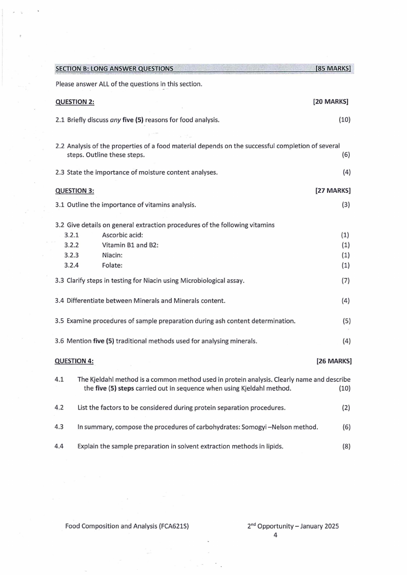 4.1 The Kjeldahl method is a common method used in protein analysis. Clearly name and describe