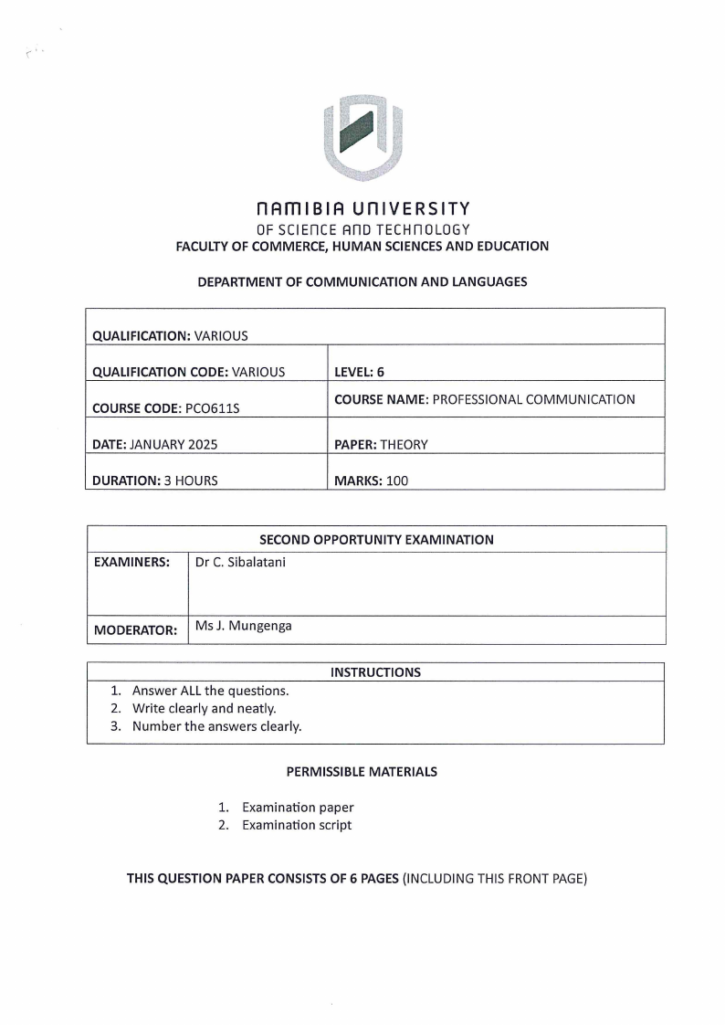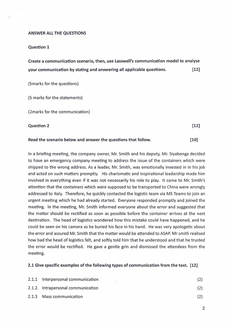 2.1 Give specific examples of the following types of communication from the text. [12]