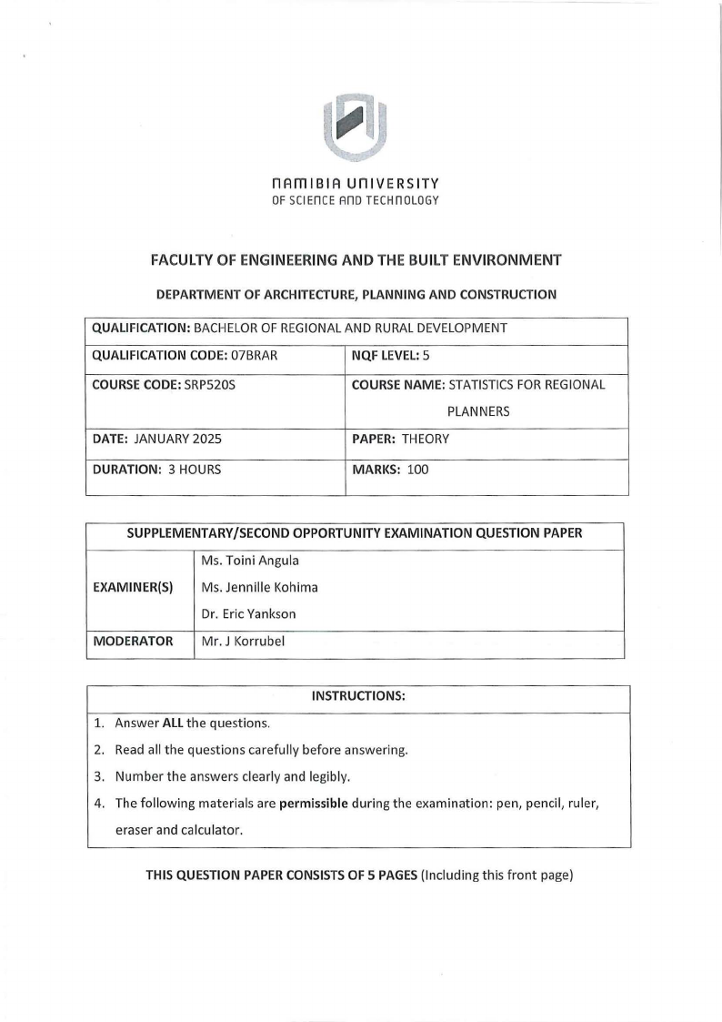 The weights of a sample offive spatial planners are as follows: 100, 120, 90, 80 and 105. Calculate