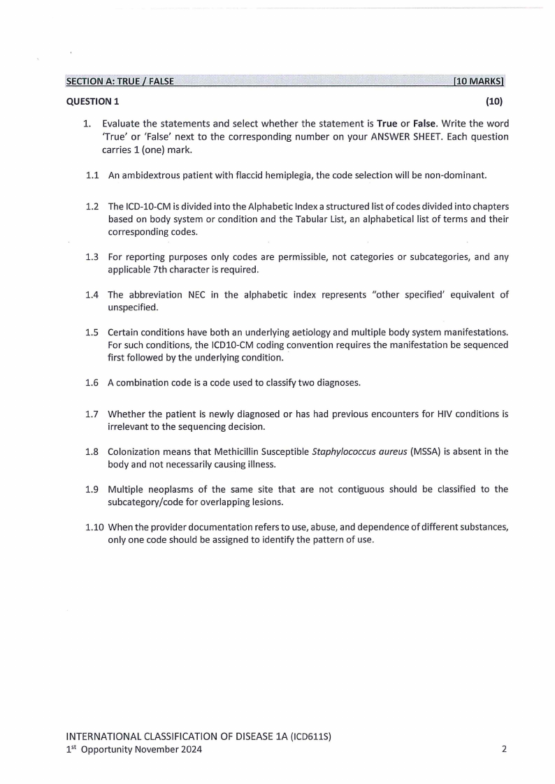 following cases. Each question carries 3 (three) marks. Sequencing carries 1 (one) mark