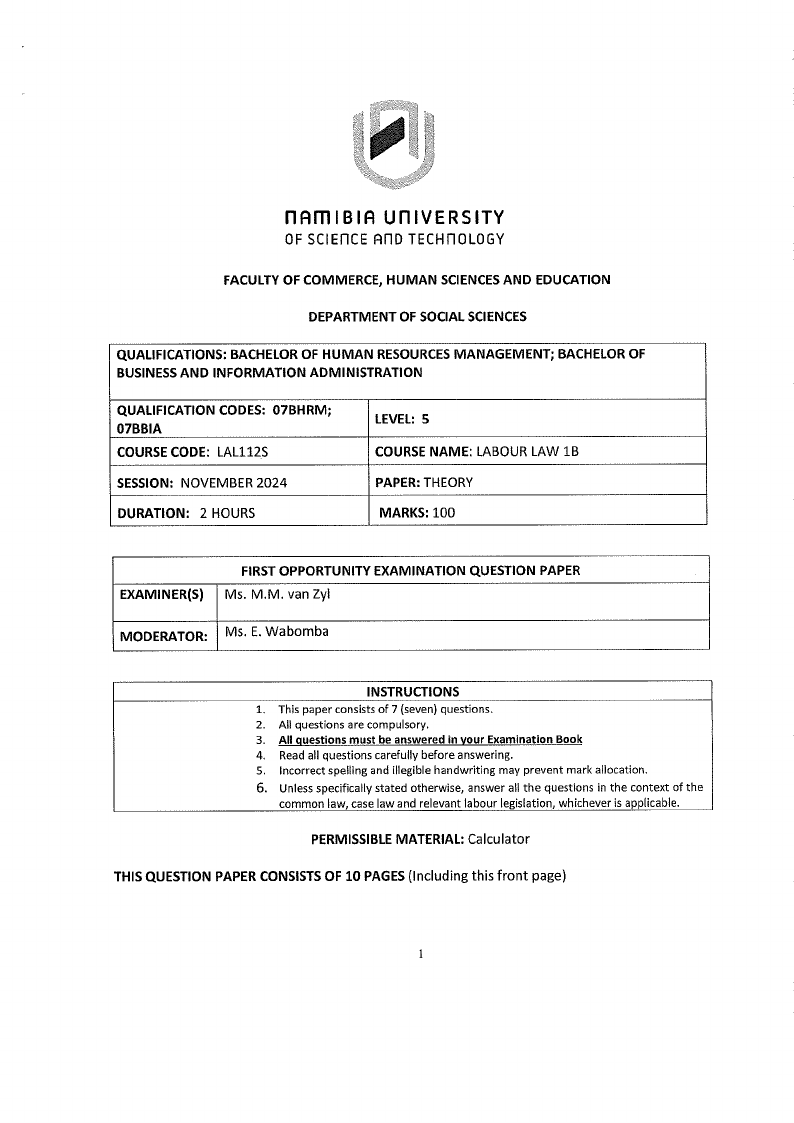 LAL112S - LABOUR LAW 1B - 1ST OPP - NOVEMBER 2024 |