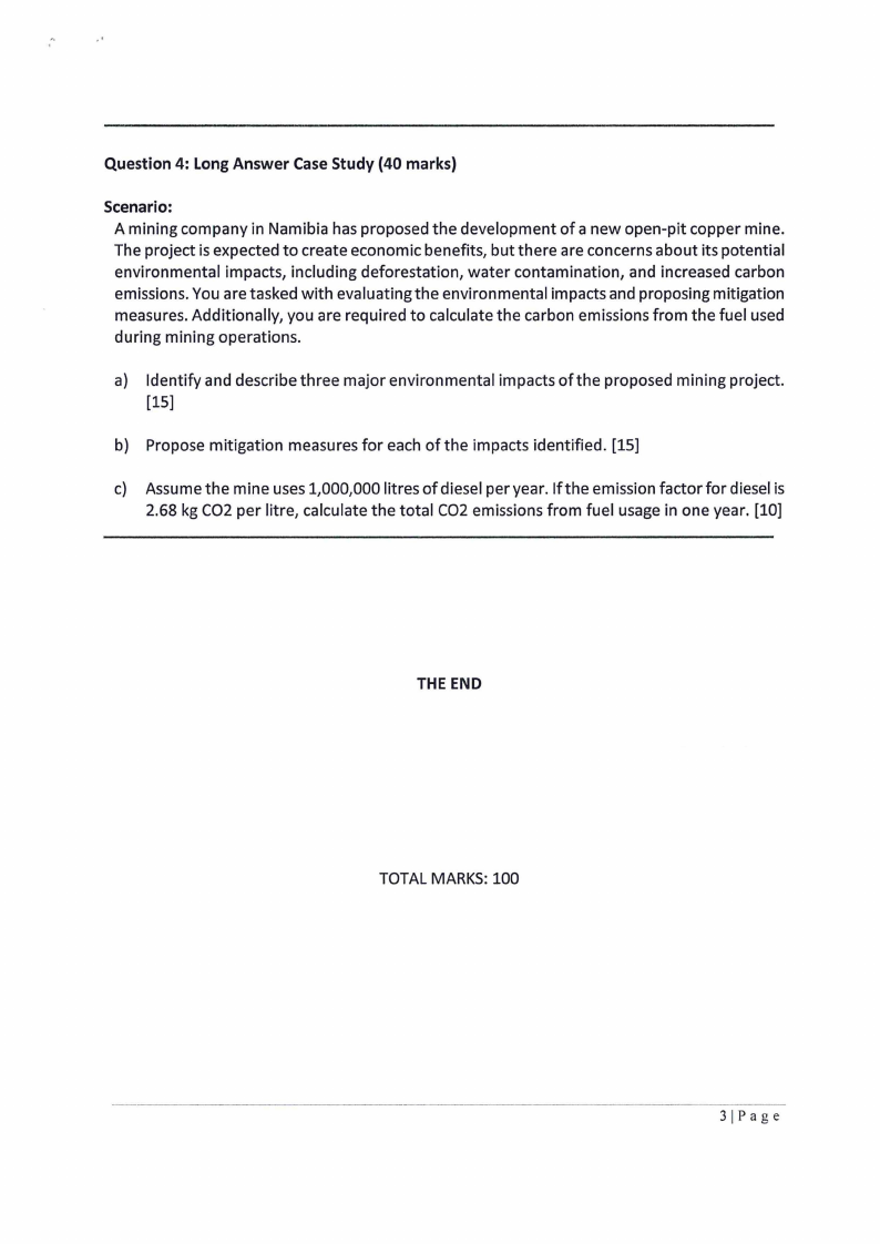 a) Identify and describe three major environmental impacts of the proposed mining project.