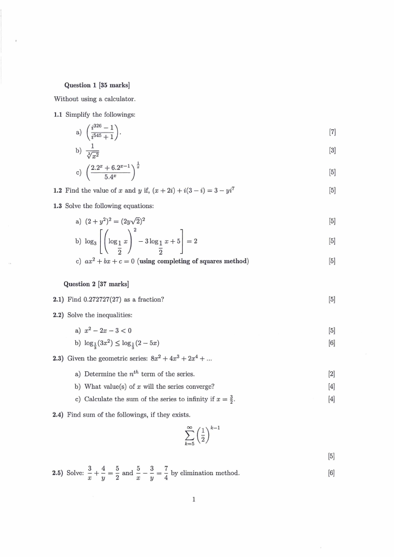 COURSE: ALGEBRA AND TRIGONOMETRY