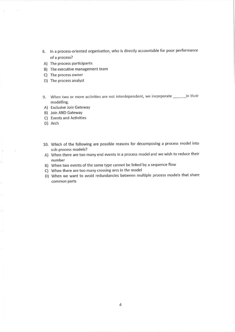 8. In a process-oriented organisation, who is directly accountable for poor performance