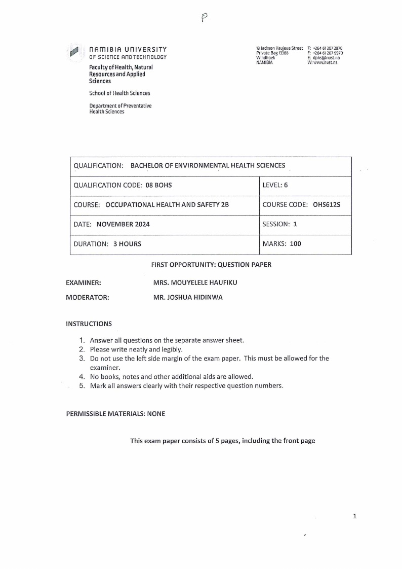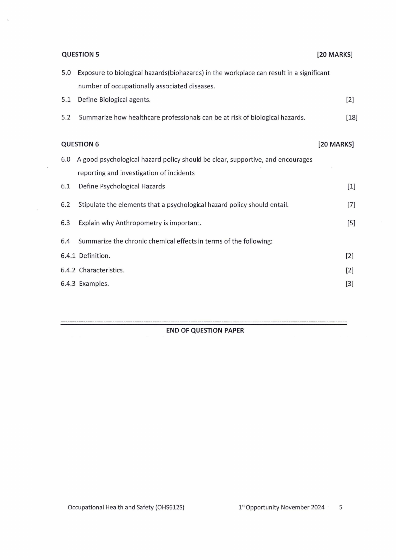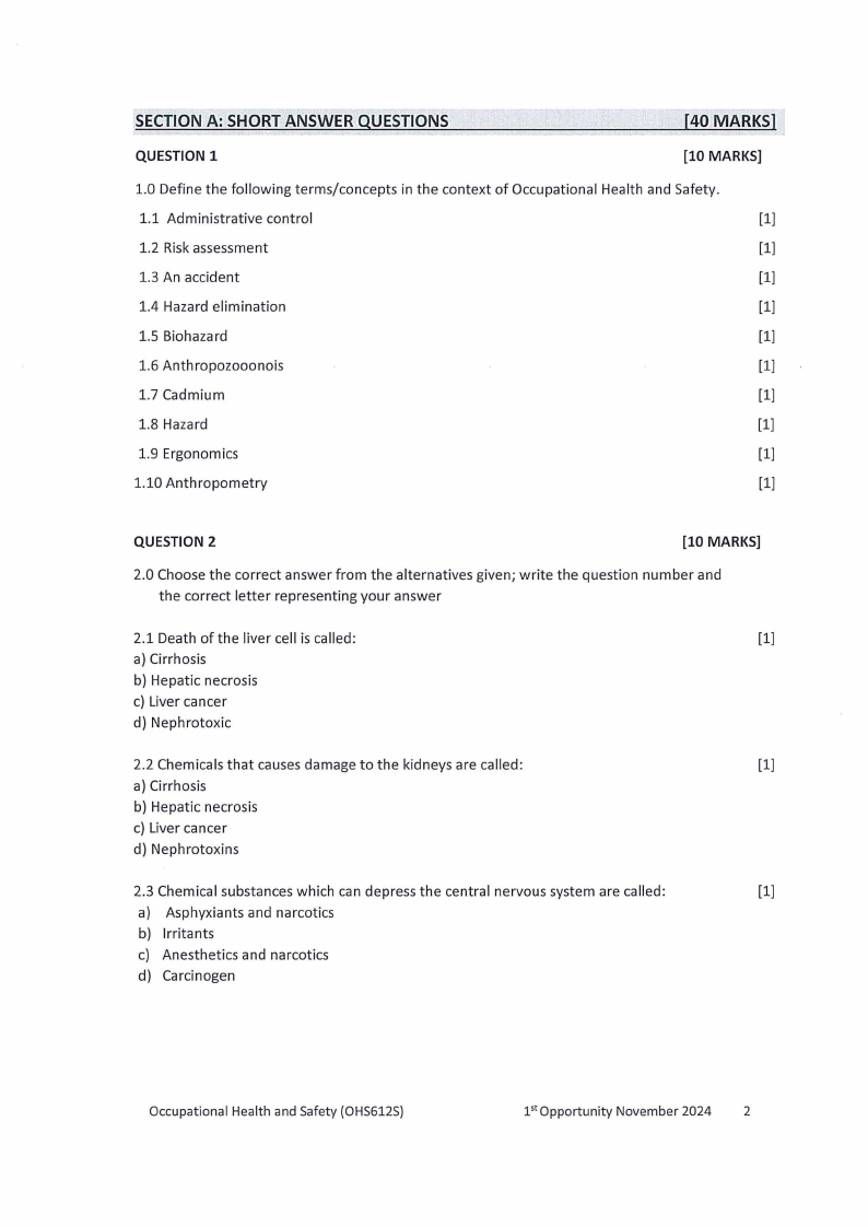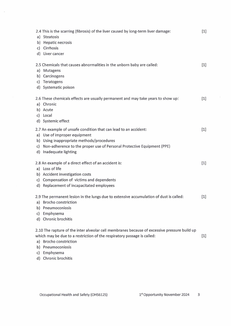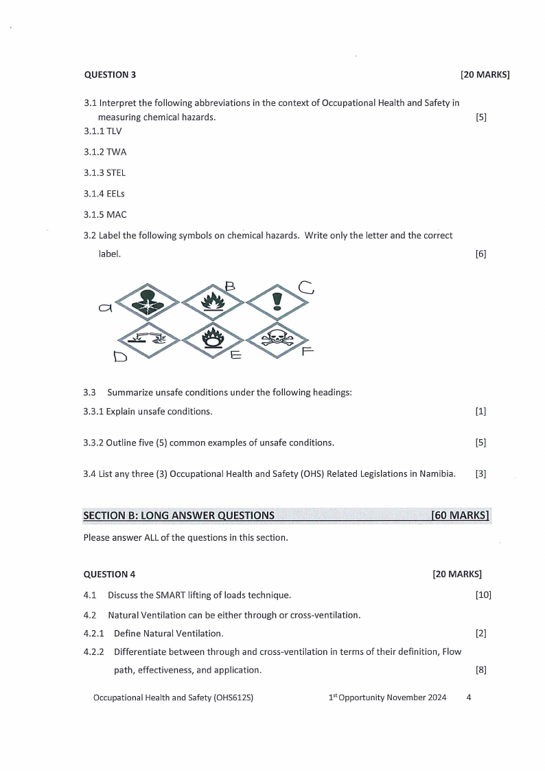 OSH612S - OCCUPATIONAL HEALTH AND SAFETY 2B - 1ST OPP - NOVEMBER 2024 |