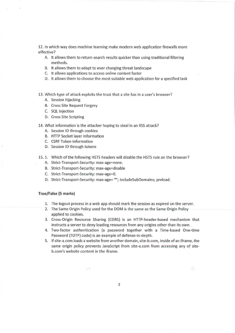 15. 1. Which of the following HSTSheaders will disable the HSTSrule on the browser?