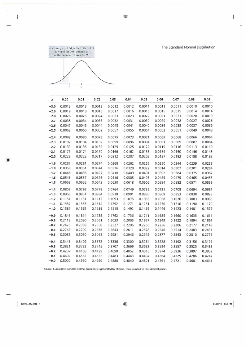 Source: Cumulative standard normal probabilities generated by Minitab, then rounded to four decimal places.