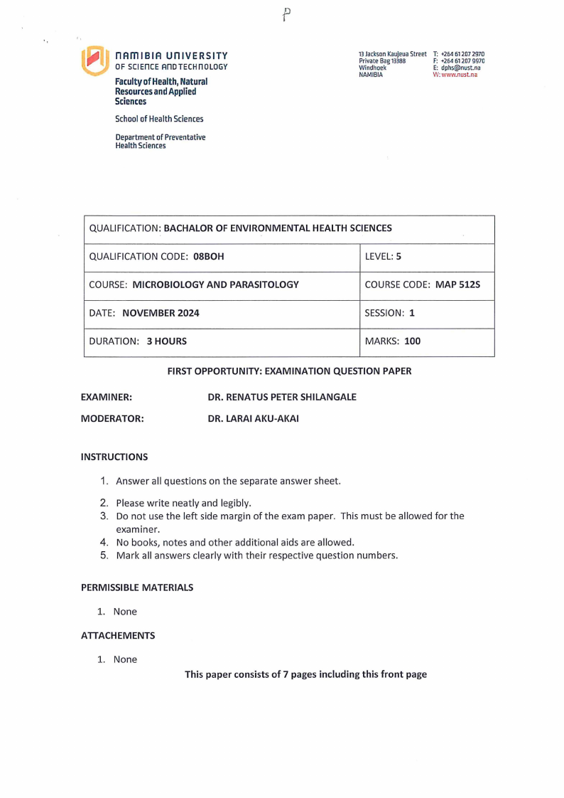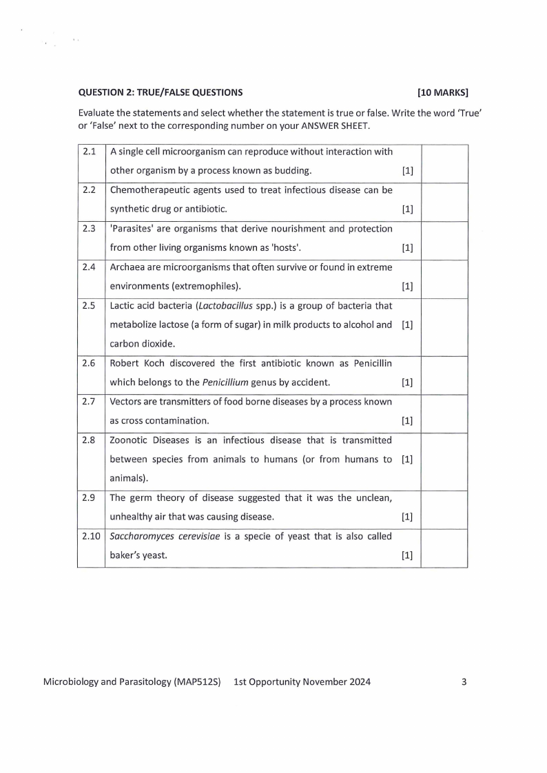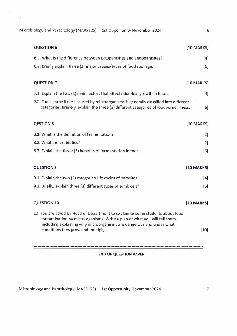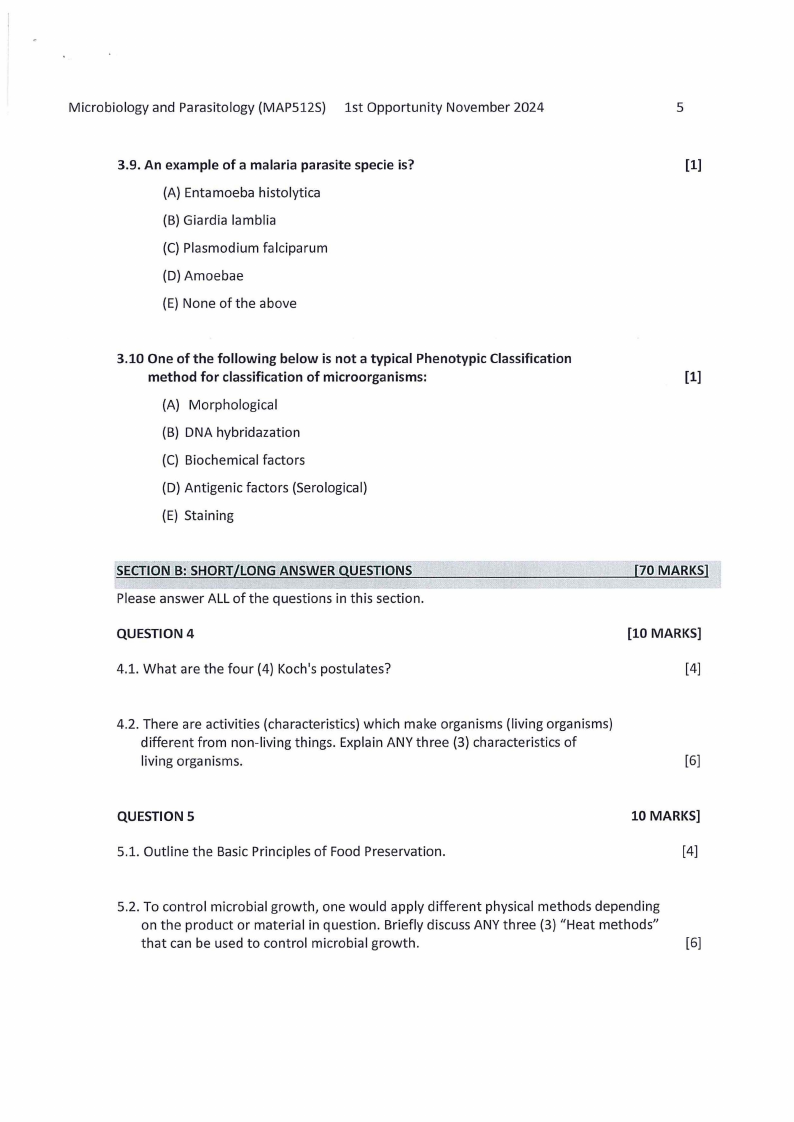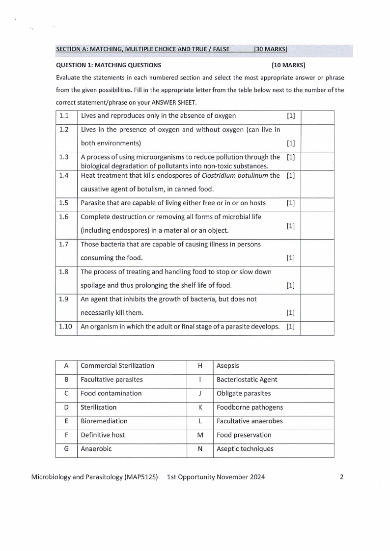 MAP512S - MICROBIOLOGY AND PARASITOLOGY -1ST OPP - NOVEMBER 2024 |