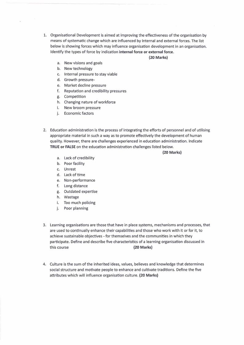 1. Organisational Development is aimed at improving the effectiveness of the organisation by