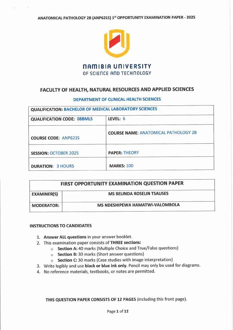 ANP621S - ANATOMICAL PATHOLOGY 2B - 1ST OPP - NOV 2025 |