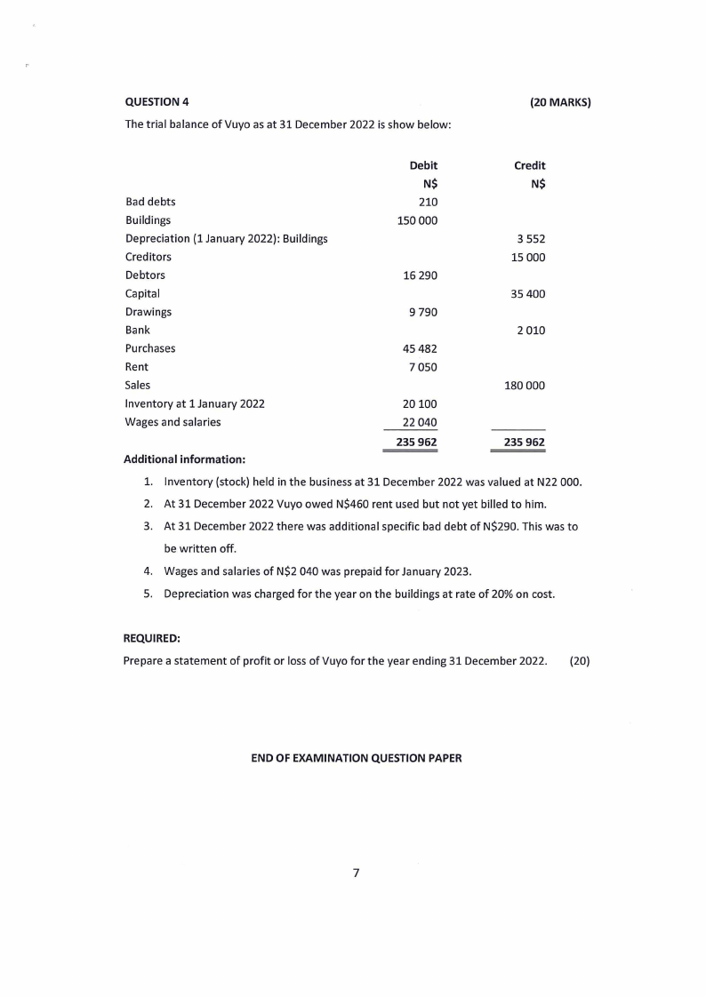 4 Sold goods for N$10 000 on credit to Yonela