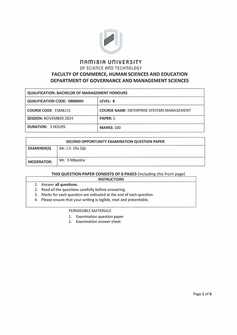 ESM821S - ENTERPRISE SYSTEM MANAGEMENT - 2ND OPP - NOV 2024 |