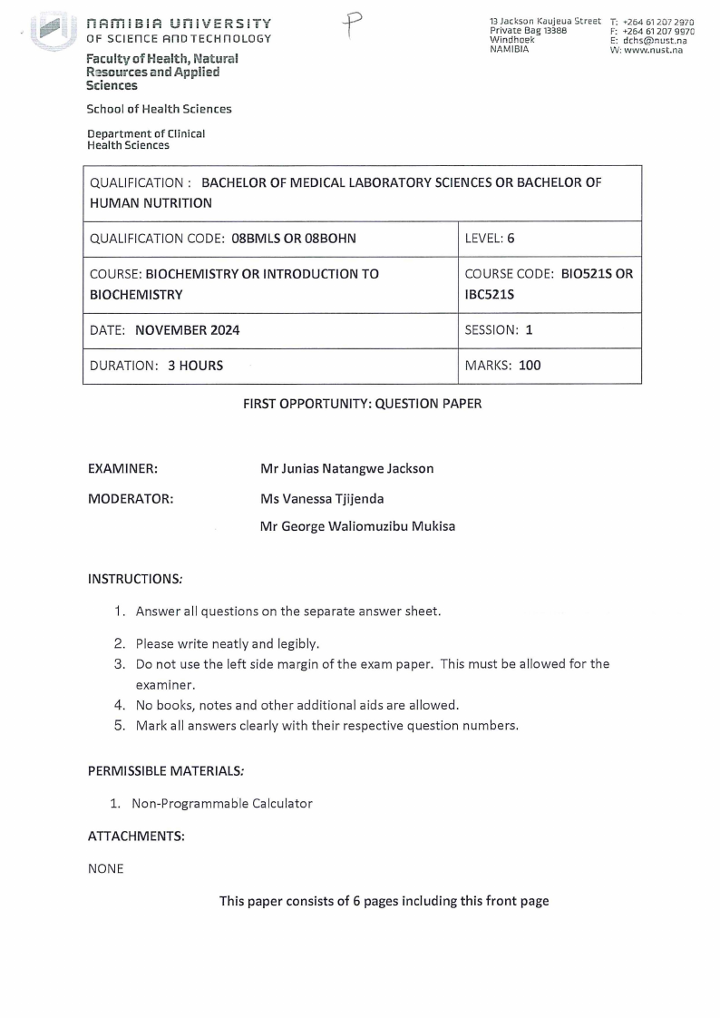Biochemistry/ introduction to biochemistry (BIO521S/IBC521S)