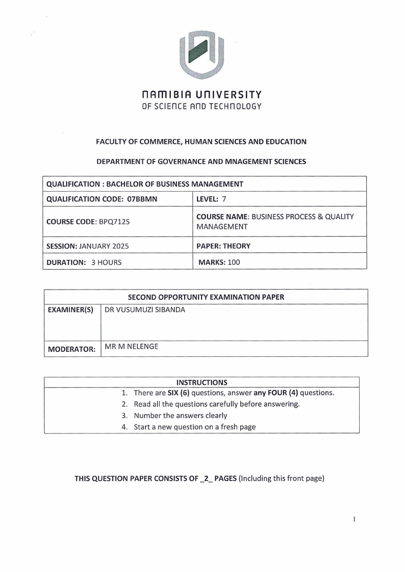 (b) Outline any five (5) benefits of Business Process Management to an organisation. [5 marks]