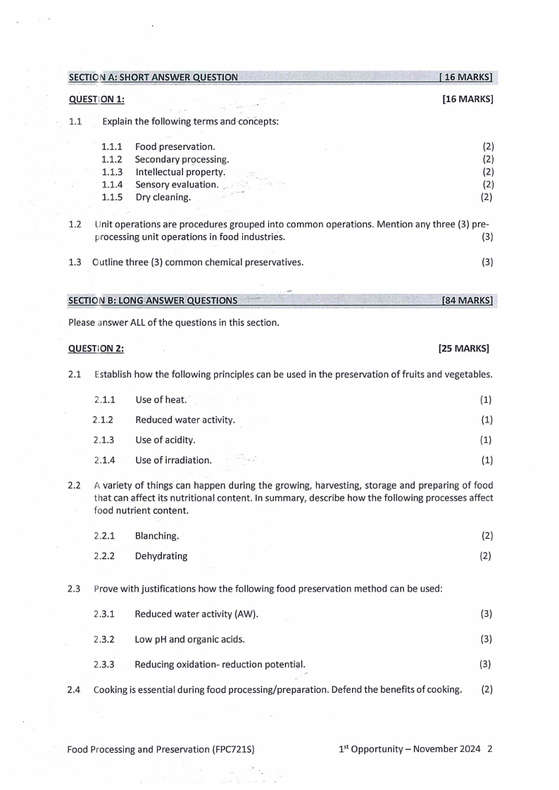2.5 Preserving the nutrients value of vegetables are essential for long shelf life. Outline