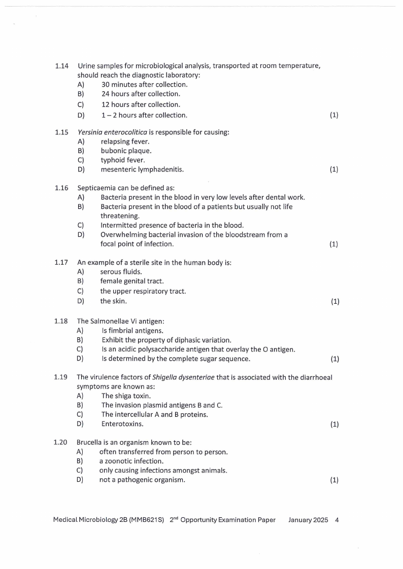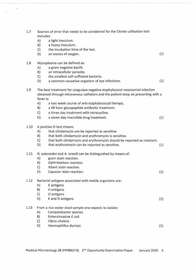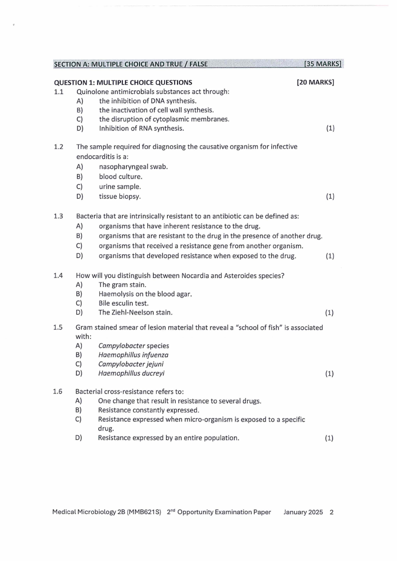MMB621S - MEDICAL MICROBIOLOGY 2B - 2ND OPP -JANUARY 2025 |