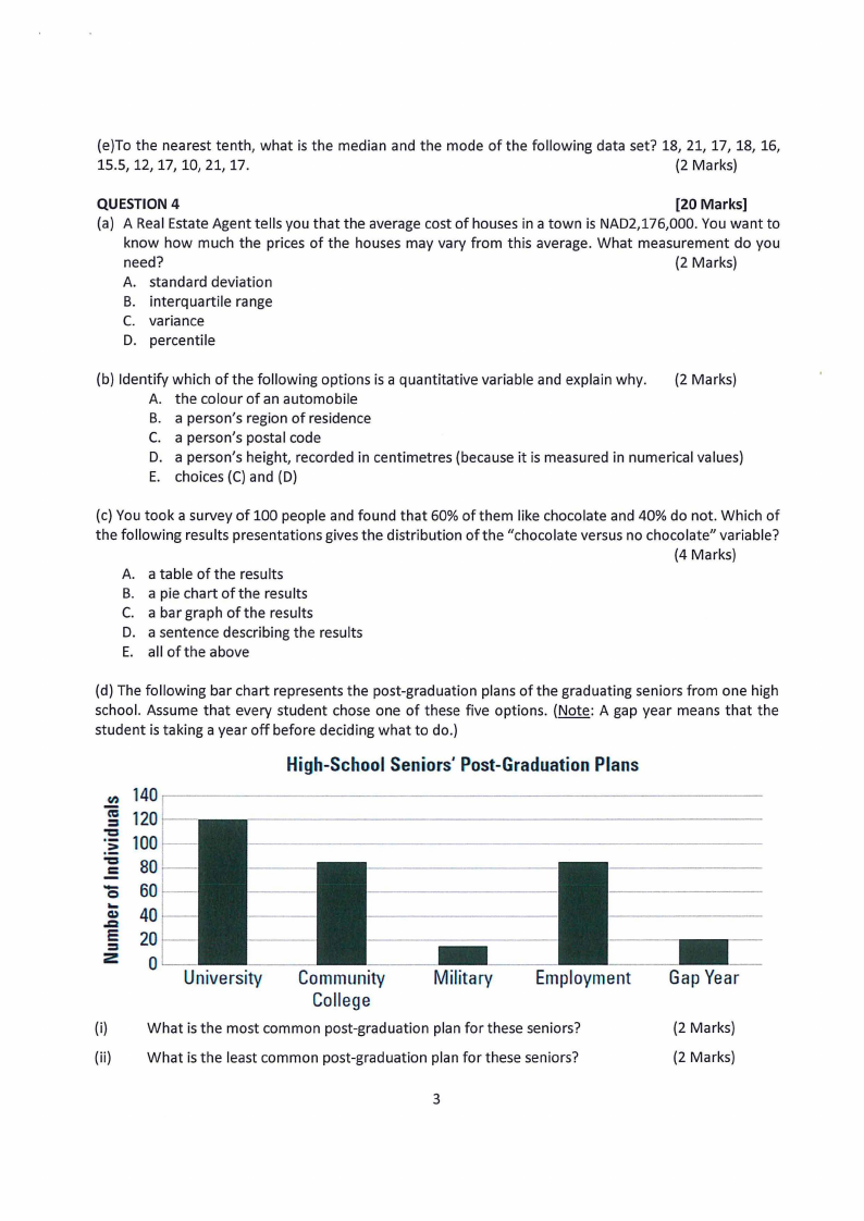 (d) The following bar chart represents the post-graduation plans of the graduating seniors from one high