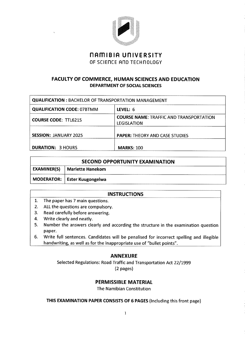TTL621S - TRAFFIC AND TRANSPORTATION LEGISLATION - 2ND OPP - JANUARY 2025 |