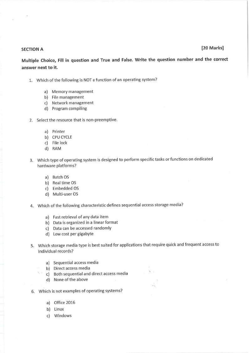 1. Various OS components work together seamlessly to manage computer tasks. Explain the functions of