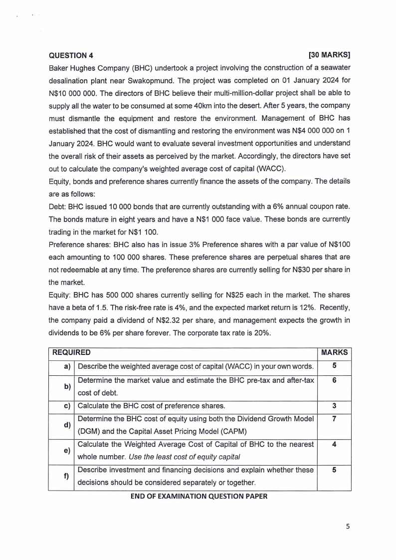 a) Describe the weighted average cost of capital (WACC) in your own words.