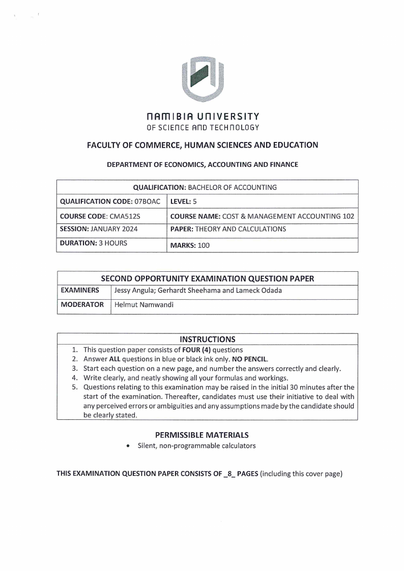CMA512S- COST AND MANAGEMENT ACCOUNTING 102- 2ND OPP- NOV 2023 |