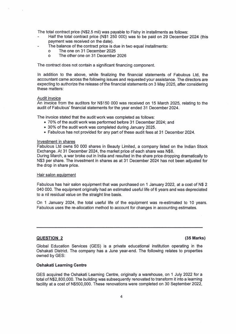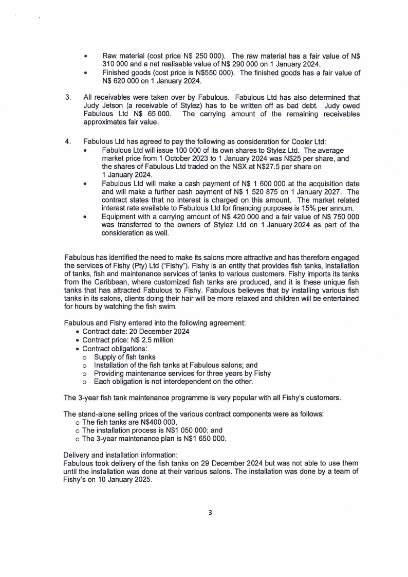 • Fabulous Ltd will make a cash payment of N$ 1 600 000 at the acquisition date