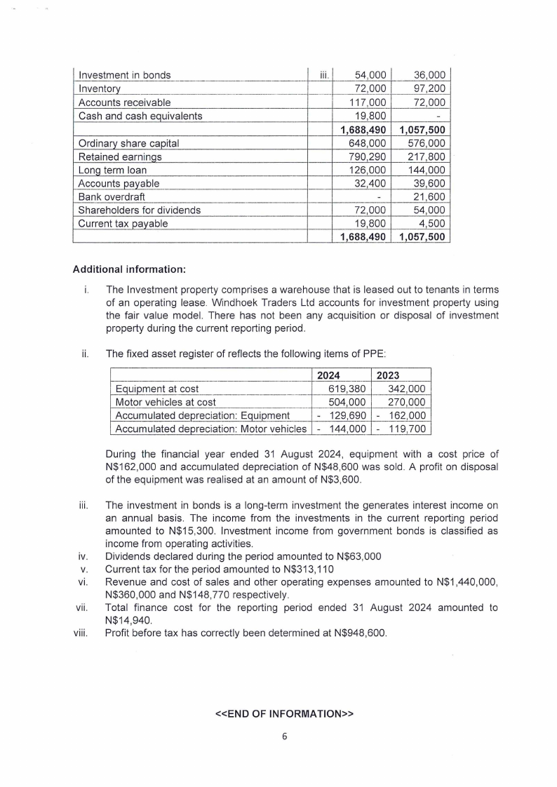 • Equipment with a carrying amount of N$ 420 000 and a fair value of N$ 750 000