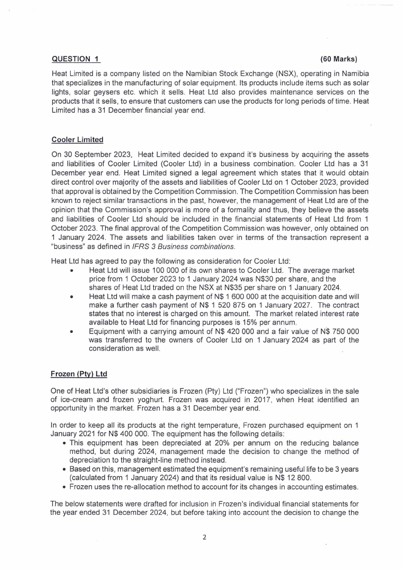 • Heat Ltd will make a cash payment of N$ 1 600 000 at the acquisition date and will