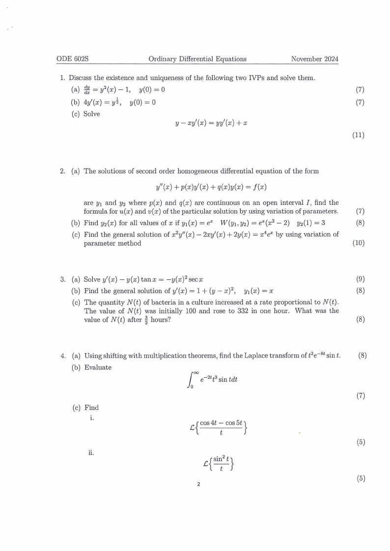 1. Discuss the existence and uniqueness of the following two IVPs and solve them.