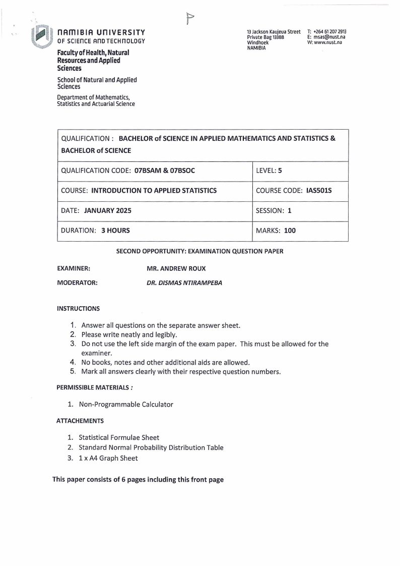 IAS501S - INTRODUCTION TO APPLIED STATISTICS - 2NS OPP - JANUARY 2025 |