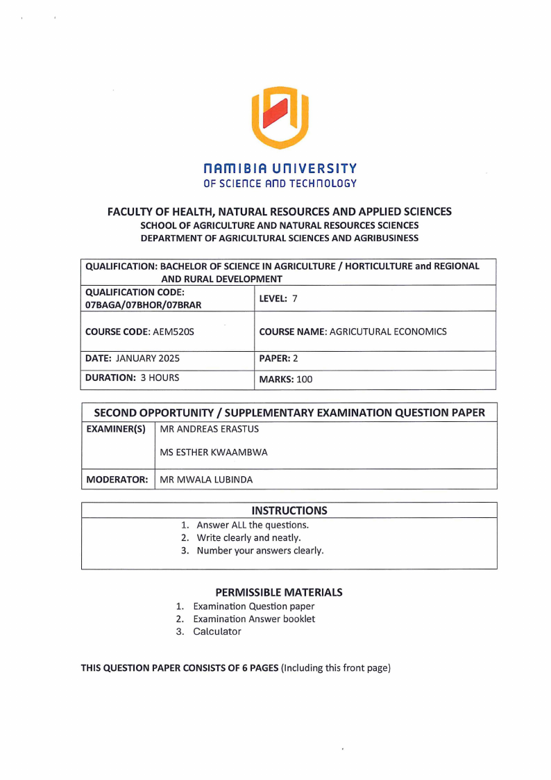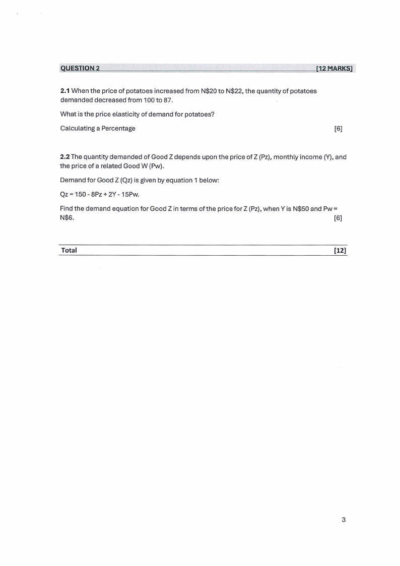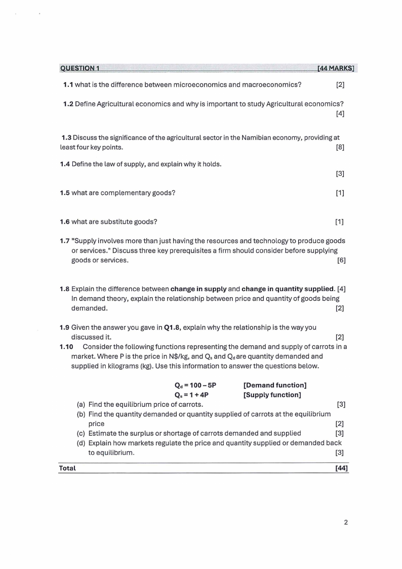 market. Where Pis the price in N$/kg, and Q. and Qd are quantity demanded and