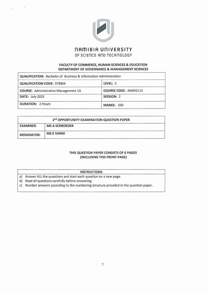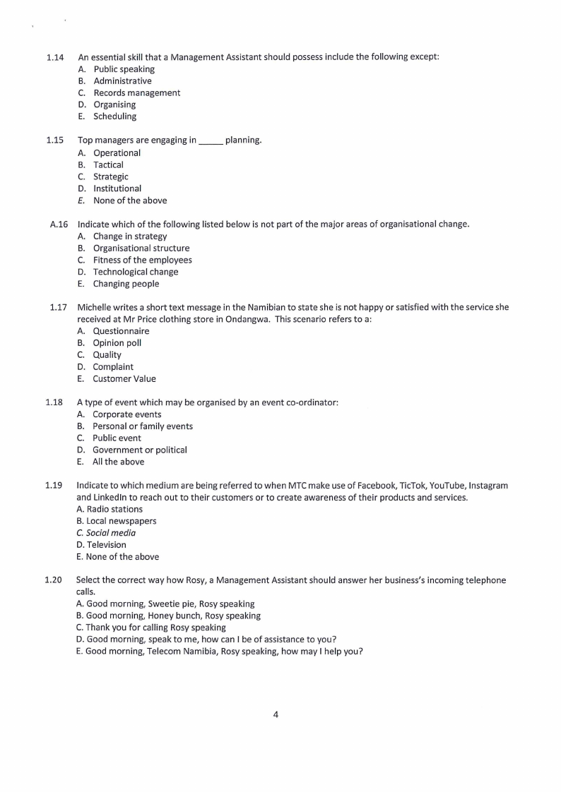3.2 lyaloo lita works as the CEO'sPersonal Assistant at MTC Namibia. Her manager has asked her to schedule a