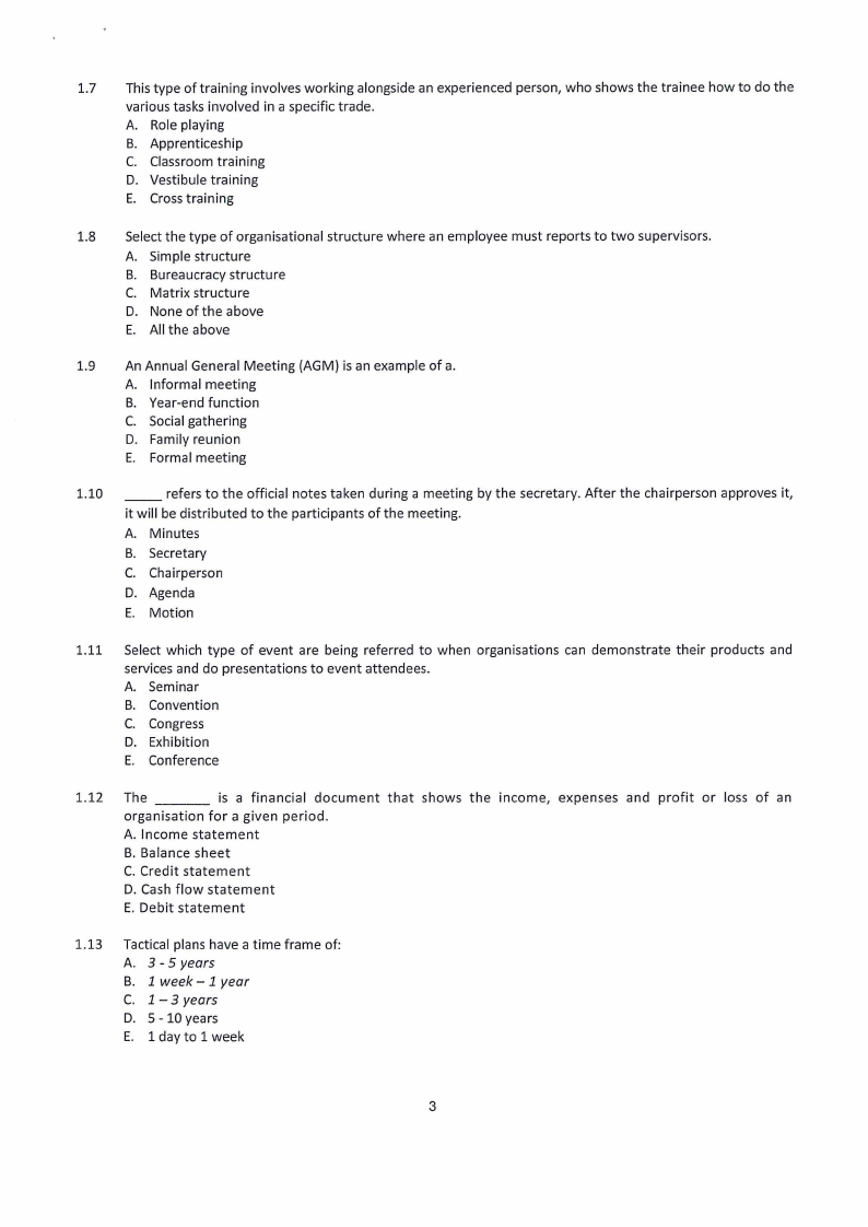 2.3 There are different players involved when organising an event. Name and discuss any three skills required by