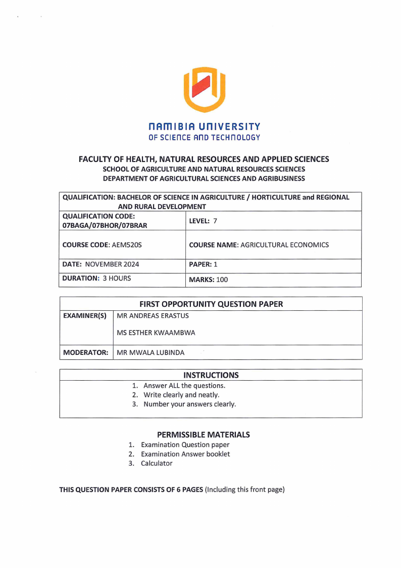 (iv) By calculation, prove why you have chosen that cash crop in (iii)?