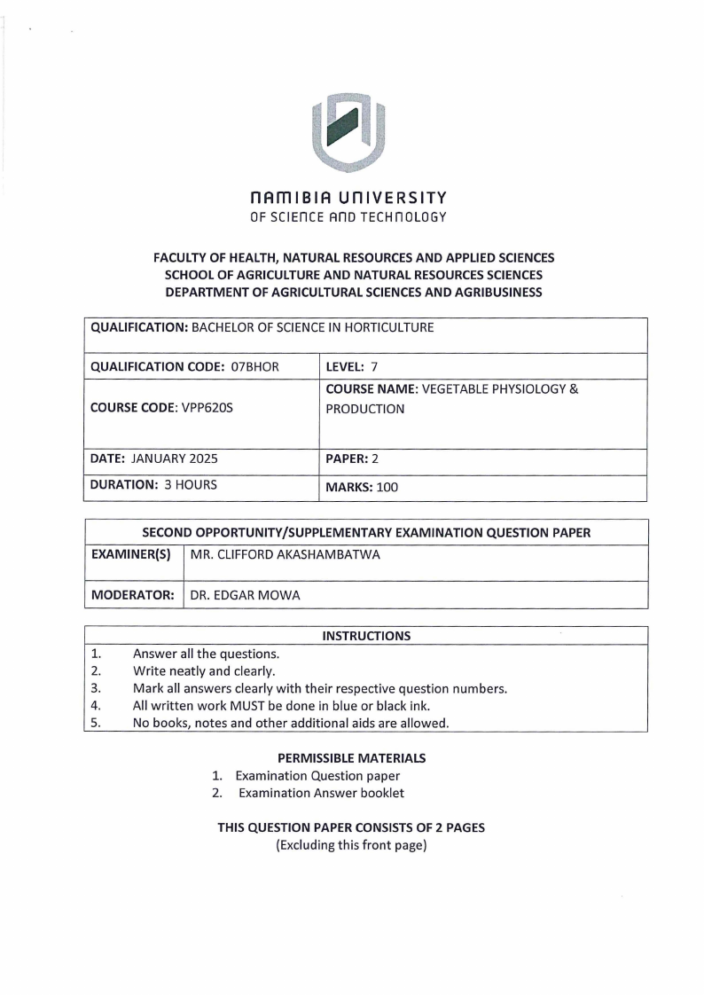 SECONDOPPORTUNITY/SUPPLEMENTARYEXAMINATION QUESTION PAPER