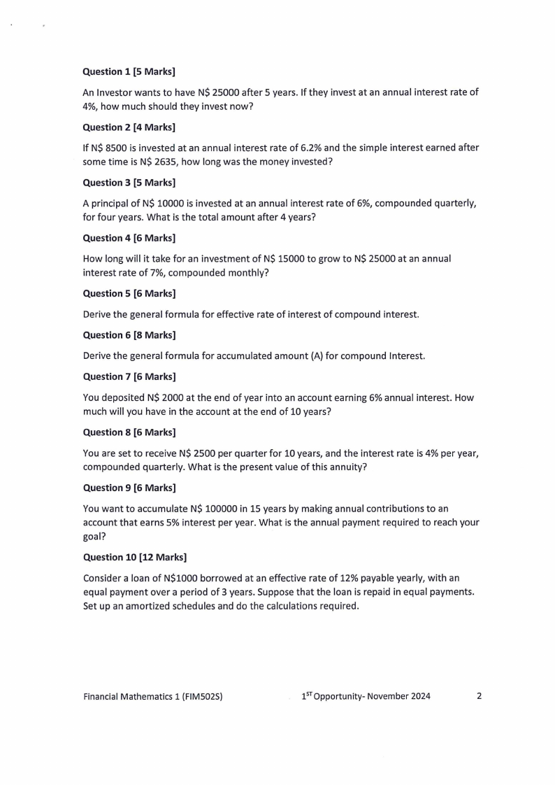 Financial Mathematics 1 (FIM5025)