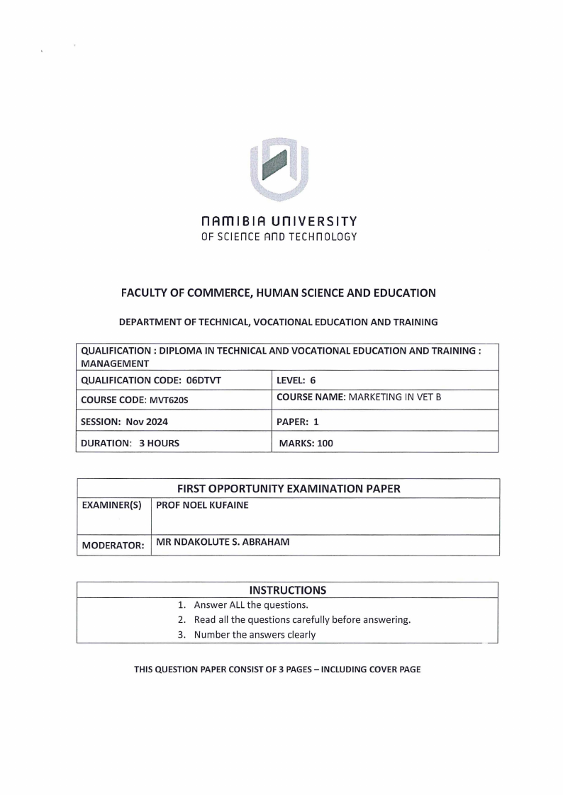 the marketing approach which is applicable for TVETtraining institution by Indicating TRUE or FALSE.