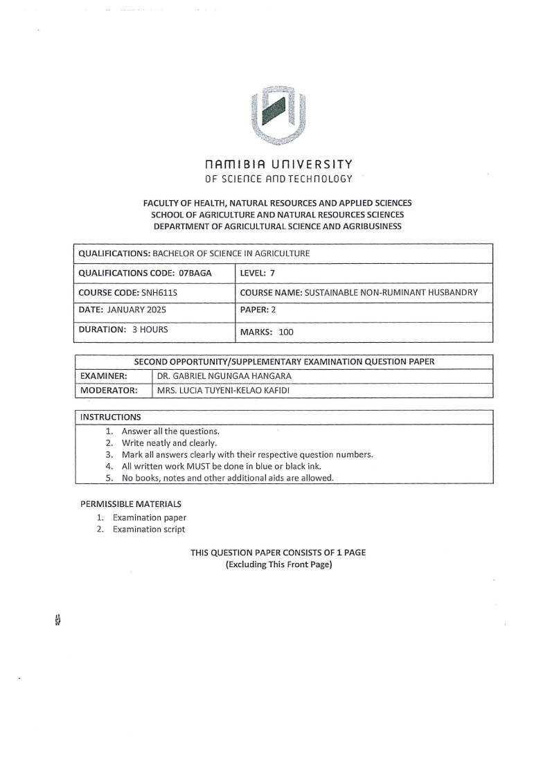 COURSE NAME: SUSTAINABLE NON-RUMINANT HUSBANDRY