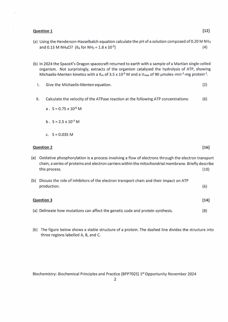 Biochemistry: Biochemical Principles and Practice (BPP702S) pt Opportunity November 2024